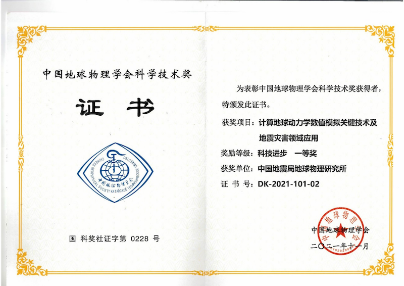 研究所科技成果榮獲2021年中國地球物理學(xué)會科學(xué)技術(shù)進(jìn)步一等獎