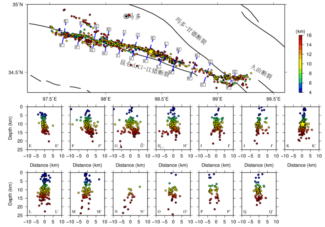 基于青海臺網處理的余震序列數據,采用地震序列精定位自動處理系統(tǒng),截止5月26日10:00,處理得到了青?,敹?/span>928個余震的精定位結果,余震分布約170km長,主震東南側有一長16km的余震稀疏段。