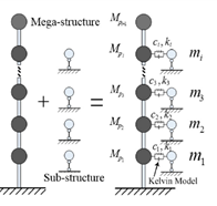 圖1 巨-子結(jié)構(gòu)隔震體系簡化分析模型 |
