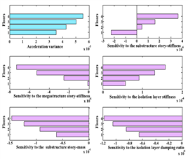 圖3 子結(jié)構(gòu)頂層加速度方差對隨機參數(shù)的靈敏度 |