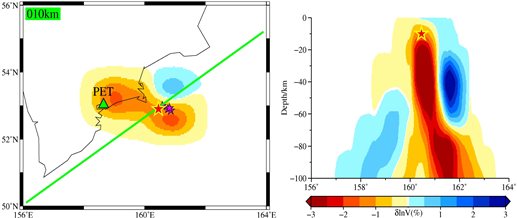 張風(fēng)雪研究員等收集堪察加?xùn)|岸遠海7.2級地震序列的波形數(shù)據(jù),從中挑選出300余條數(shù)據(jù)質(zhì)量較高的P波走時,開展震源區(qū)的速度結(jié)構(gòu)反演。本次反演共利用該地震序列中5個震級大于6.0的地震波形數(shù)據(jù),其中離震源區(qū)最近的波形記錄來自PET臺站,距離約130公里。