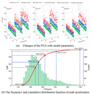 中國地震局地球物理研究所俞瑞芳研究員團隊發(fā)展和完善了隨機有限斷層法,建立了能夠表征地震動低頻成分、且適合工程應用的寬頻帶地震動模擬方法。首先,通過在確定性的子源位錯模型中加入服從k平方分布的隨機滑移量,模擬更加符合真實情況的斷層破裂;然后通過采用表征子源非均勻應力降的動拐角頻率模型,優(yōu)化理論震源譜;最后,通過在子源幅值譜中引入低頻濾波函數(shù),補償由于路徑效應簡化等不確定性因素導致的低頻模擬誤差。通過對汶川地震記錄的模擬表明,本文建立的方法能夠較好地模擬基巖場地加速度時程的幅值和頻譜(圖1),但對地震動低頻分量的合理估計依賴于先驗目標譜的選擇。基于建立的寬頻帶地震動模擬方法,對白鶴灘壩址最大可信地震動參數(shù)進行了綜合評價,給出了不同層次和風險水平的地震動參數(shù)(圖2),可為近場大震作用下300m級的高壩抗震安全評估提供合理的地震動輸入。