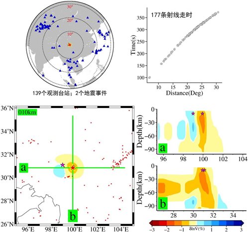 張風(fēng)雪等針對四川甘孜州新龍縣5.4級地震,收集該地震發(fā)生前半年內(nèi)5級以上地震的波形數(shù)據(jù)。利用走時互易性方法,對震源區(qū)的P波速度結(jié)構(gòu)進行了反演分析。
