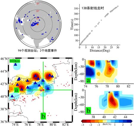 張風雪等收集新疆克孜勒蘇州阿合奇縣6.0級地震源區(qū)的地震波形數(shù)據(jù),利用走時互易性方法開展震源區(qū)P波速度結構反演。該次地震周圍約500公里范圍內(nèi),近兩個月內(nèi)一共發(fā)生了2次4級以上的地震(含本次)。