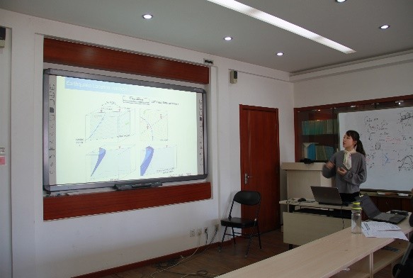 楊溢同學(xué)報(bào)告中討論了2017年九寨溝Ms7.0地震震源區(qū)橫波分裂變化特征:利用可視化測(cè)量方法得出九寨溝地震震源區(qū)內(nèi)的上地殼各向異性結(jié)果,得出了震源區(qū)積累的應(yīng)力隨余震發(fā)生而逐漸減少,快波偏振方向逐漸趨于收斂,慢波時(shí)間延遲逐漸降低并趨于穩(wěn)定的結(jié)論。