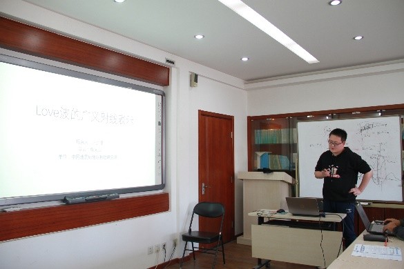 王少曈同學(xué)的報(bào)告《Love波的廣義射線表示》的中心思想是二維單層半空間模型中的Love面波對(duì)應(yīng)于廣義射線理論中所有的廣義折射波解之和。